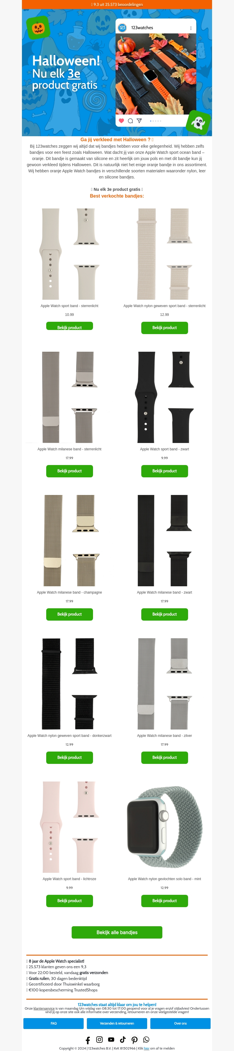 Maak je klaar voor Halloween met onze speciale aanbieding op Apple Watch bandjes. Kies uit een breed aanbod en ontvang elk 3e product gratis. Perfect om je outfit te matchen voor het seizoen!