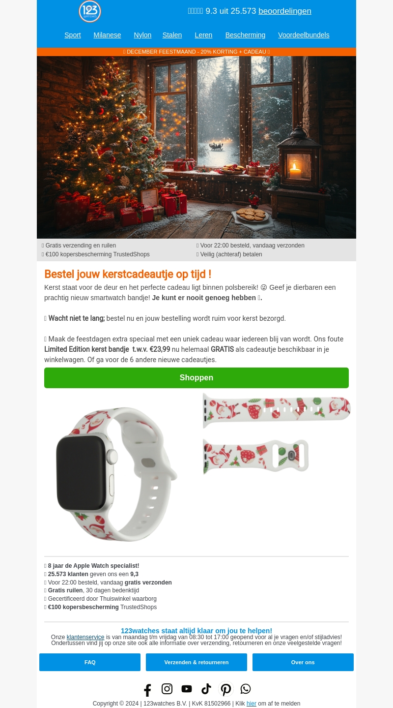 Dit is je laatste kans om een Limited Edition kerstbandje te ontvangen bij jouw bestelling. Zorg dat je je kerstcadeautjes op tijd binnen hebt met onze snelle verzending. Geniet van feestelijke kortingen en creΓ«er onvergetelijke momenten met unieke cadeaus. Het kerstbandje heeft een waarde van β¬23,99 en is volledig gratis. Mis deze kans niet!