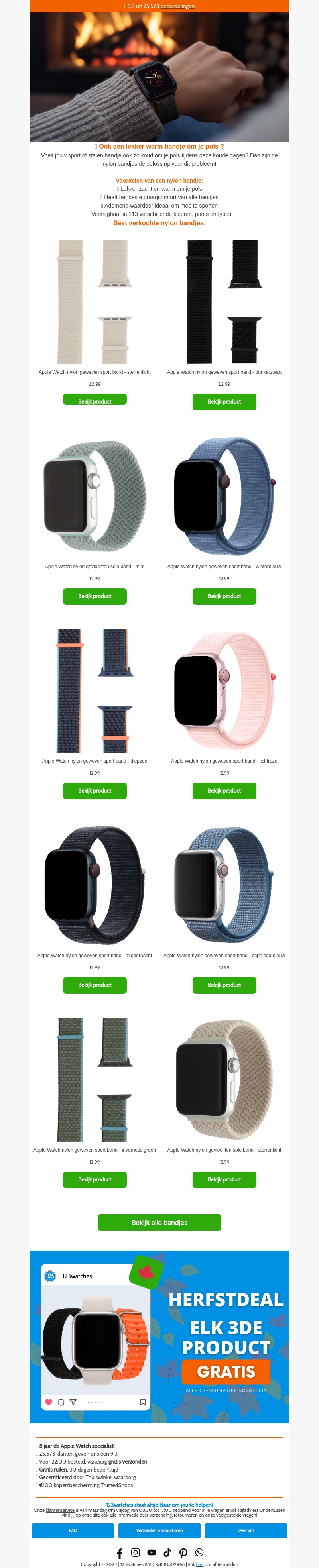 Heb je last van een koud polsbandje voor je smartwatch? Kies dan voor onze nylon bandjes die zowel comfortabel als stijlvol zijn. Beschikbaar in diverse kleuren en perfect voor de koude dagen. Ontvang nu een speciale aanbieding: elk derde product gratis!