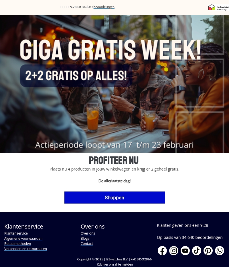 Het is de allerlaatste dag van onze sensationele Giga Gratis Week! Profiteer van 2+2 gratis op alles in onze collectie. Voeg vier items toe aan je winkelwagen en betaal er slechts twee. Hoe dan ook moe, wacht niet langer. Haast je voordat de actie eindigt!