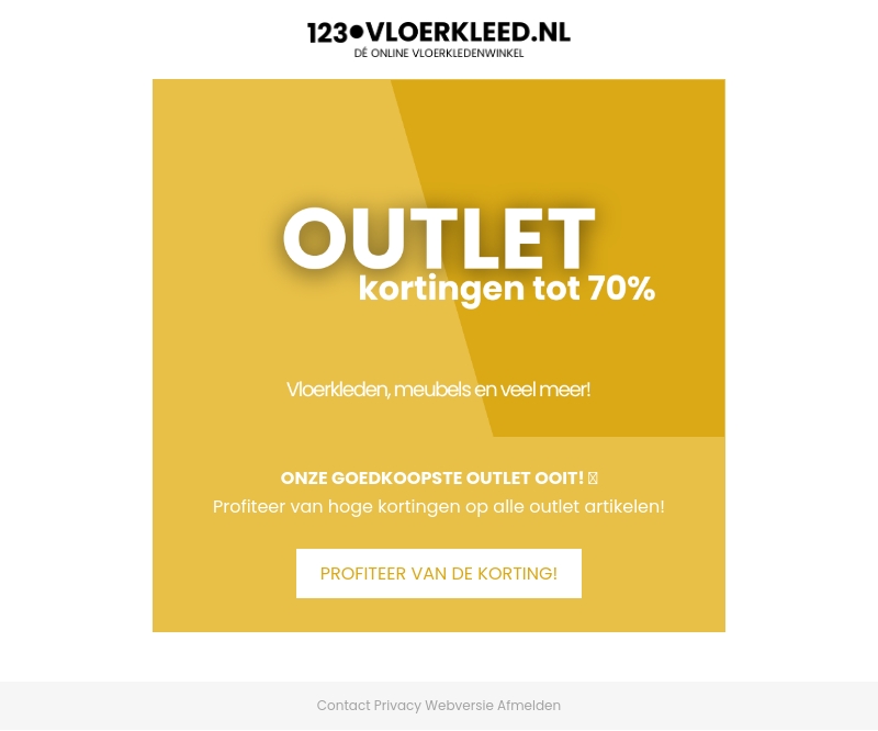 Profiteer van enorme kortingen tot wel 70% op vloerkleden, meubels en meer bij 123Vloerkleed.nl. Onze goedkoopste outlet ooit met hoge kortingen op alle outlet artikelen. Mis deze fantastische aanbiedingen niet en profiteer nu direct!