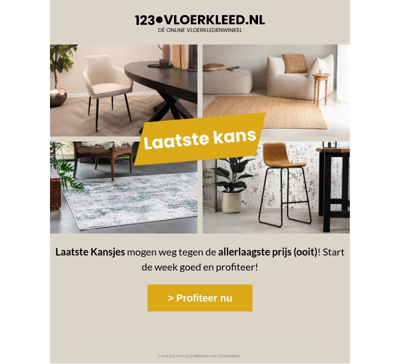 Mis deze unieke gelegenheid niet om prachtige vloerkleden aan te schaffen tegen de allerlaagste prijzen ooit. Begin de week goed en verfris je interieur met een stijlvolle update. Ontdek onze diverse collectie en vind een perfecte match voor jouw woonruimte. Wees er snel bij, want de voorraad is beperkt. Profiteer nu van deze speciale aanbiedingen en maak van je huis een thuis.