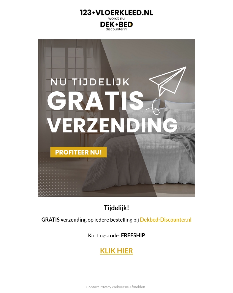 Dekbed-Discounter biedt tijdelijk gratis verzending aan op alle bestellingen. Gebruik de kortingscode FREESHIP om van deze actie te profiteren. Bezoek de website nu en ontdek ons uitgebreide assortiment. Deze aanbieding geldt voor een beperkte tijd, dus wacht niet te lang. Ontdek hoe je met Dekbed-Discounter kunt besparen op jouw droominterieur. Mis deze kans niet en shop vandaag nog.