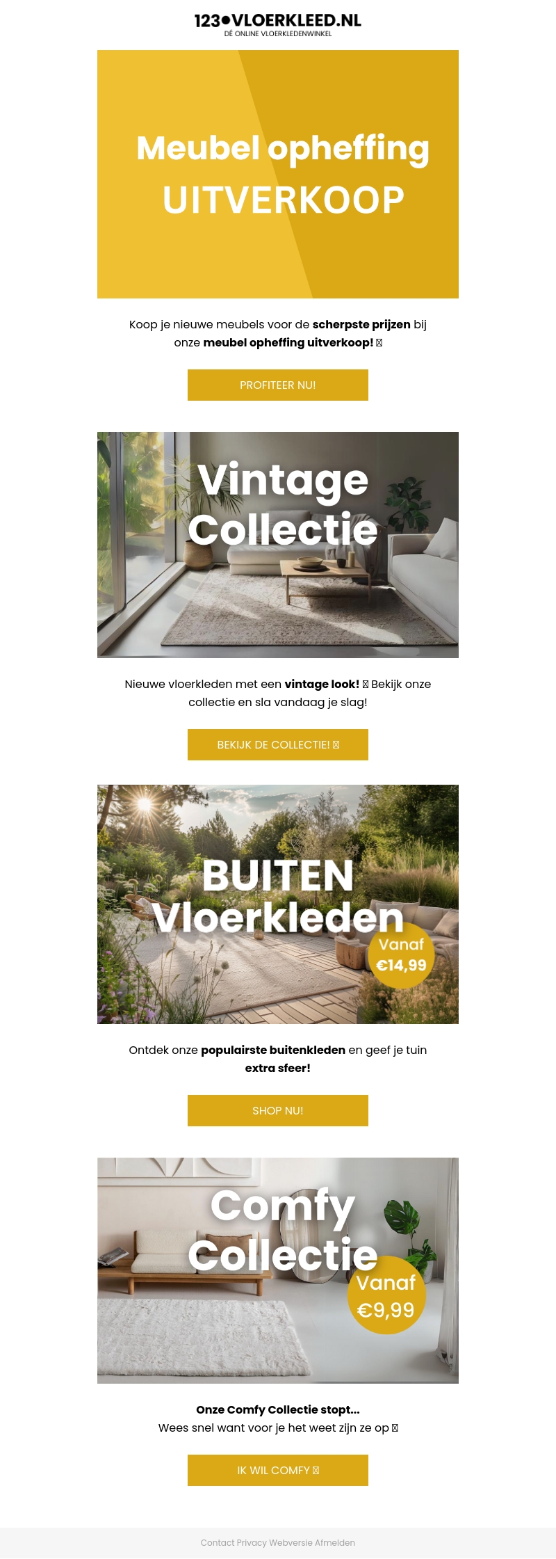 Koop je nieuwe meubels voor de scherpste prijzen bij onze meubel opheffing uitverkoop! Onze vintage, buiten, en comfy collecties zijn nu beschikbaar. Profiteer van de uitverkoop en vind jouw favoriete vloerkleden tegen geweldige prijzen.