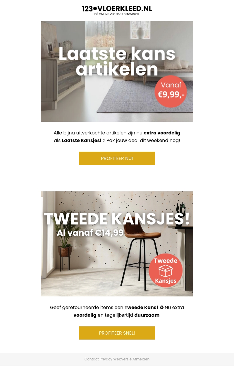 Ontdek onze laatste kans artikelen nu extra voordelig vanaf €9,99. Profiteer ook van geretourneerde items met flinke kortingen, vanaf slechts €14,99. Mis deze unieke kans niet en grijp je deal deze week nog!