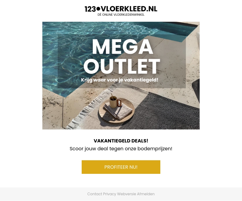 Mis de Mega Outlet bij 123Vloerkleed.nl niet! Scoor de beste vakantiegelddeals met onze bodemscherpe prijzen. Profiteer nu en krijg meer waar voor je vakantiegeld. Bezoek onze website voor de laatste aanbiedingen.