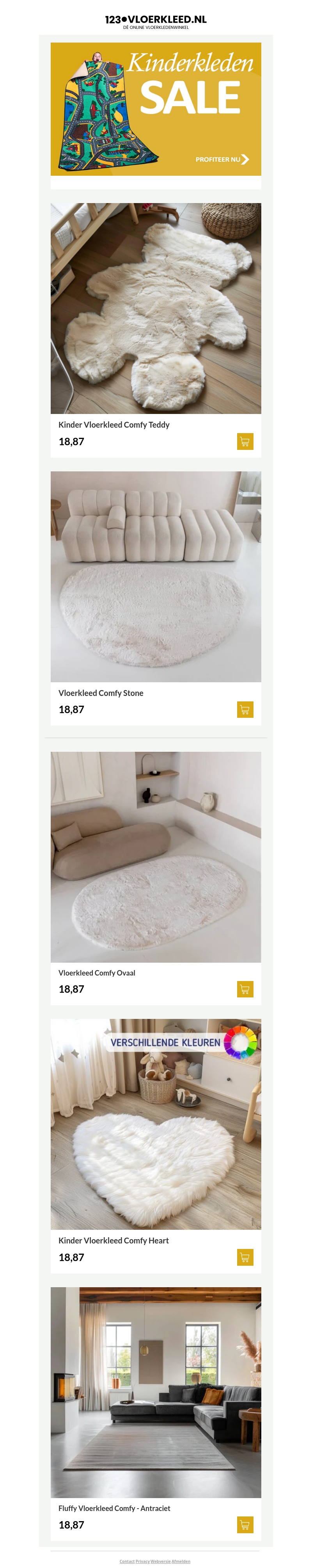 Op zoek naar een nieuw kindervloerkleed? 123Vloerkleed biedt een diverse selectie comfortabele en stijlvolle vloerkleden aan. Verkrijgbaar in verschillende kleuren en vormen, en nu in de aanbieding voor slechts €18,87!