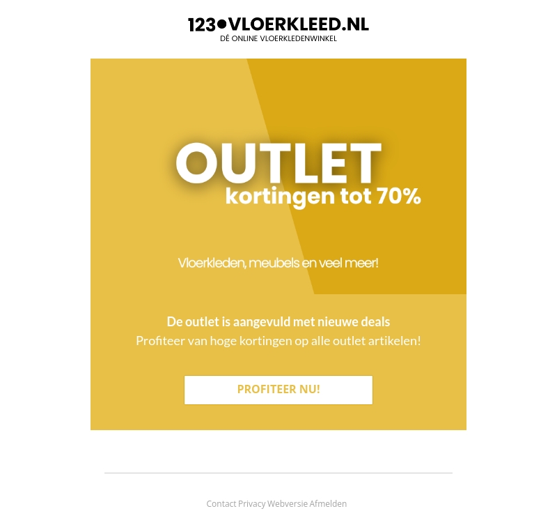 De outlet van 123Vloerkleed.nl is aangevuld met nieuwe deals! Profiteer van hoge kortingen tot 70% op vloerkleden, meubels en veel meer. Wacht niet te lang en scoor jouw favoriete items voor een fractie van de prijs. Bezoek onze website en ontdek de beste outlet aanbiedingen.