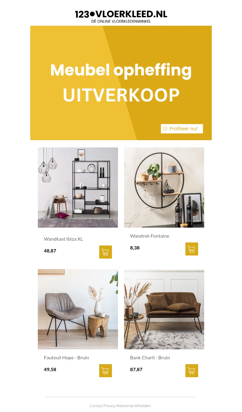 Mis deze kans niet! Ontdek geweldige kortingen op diverse meubels tijdens onze meubeluitverkoop. Of je nu op zoek bent naar een stijlvolle wandkast, een comfortabele fauteuil of een elegante bank, wij hebben het allemaal in de aanbieding. Wees er snel bij voordat het te laat is!