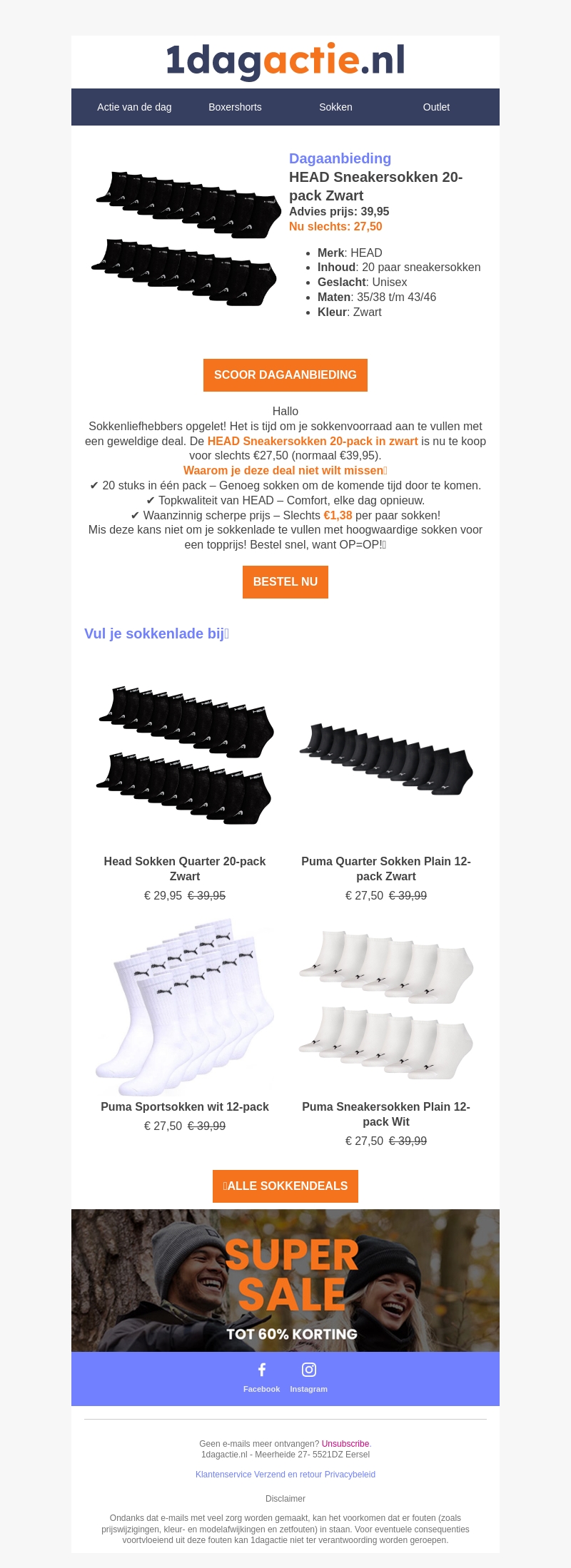 Sokkenlade vullen? HEAD Sneakersokken 20 paar voor €27,50!🧦