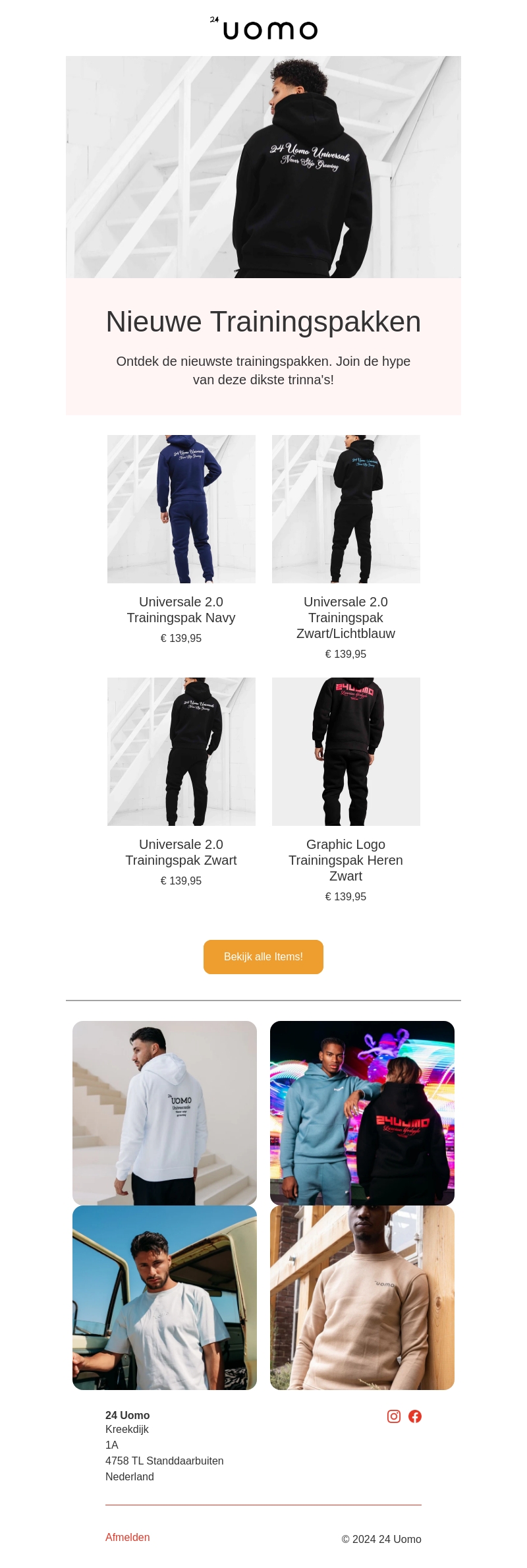 Bekijk de nieuwste collectie Universale 2.0 trainingspakken van 24 Uomo. Deze stijlvolle en comfortabele trainingspakken zijn beschikbaar in verschillende kleuren. Perfect voor zowel sportieve activiteiten als dagelijks gebruik.