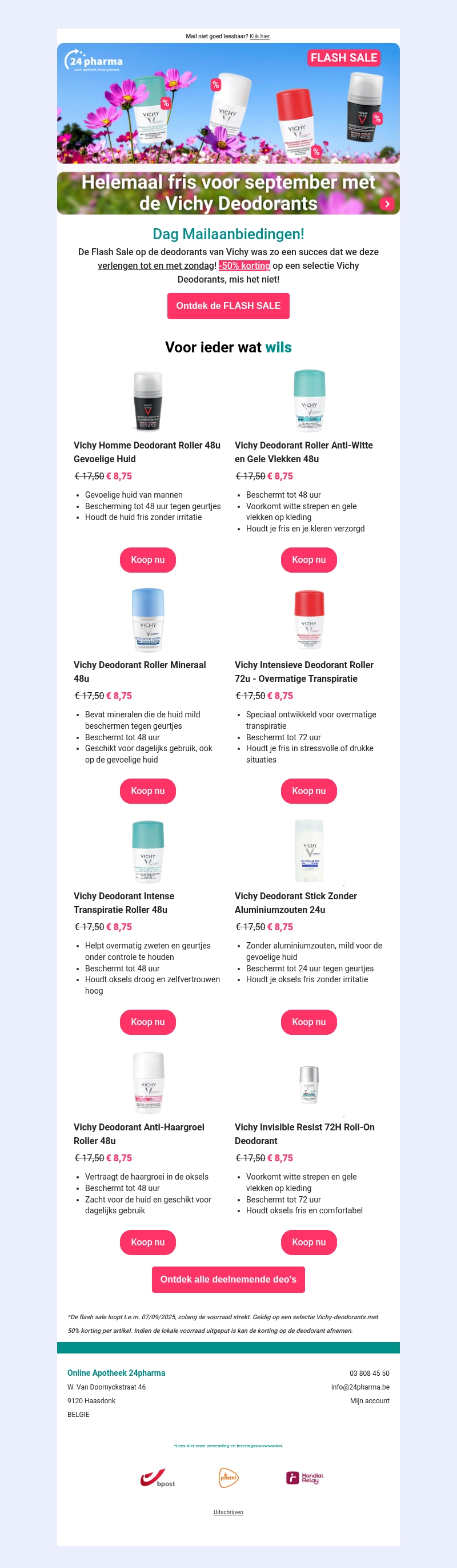 - Vichy Deodorant Anti-Haargroei Roller 48u 50mlnu € 8.75 bij 24pharmakoop