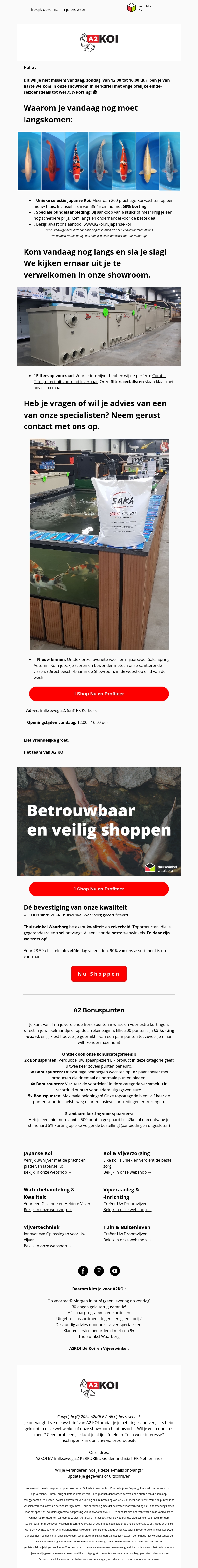 Vandaag tot 75% korting op Japanse Koi! Bezoek onze showroom in Kerkdriel!
