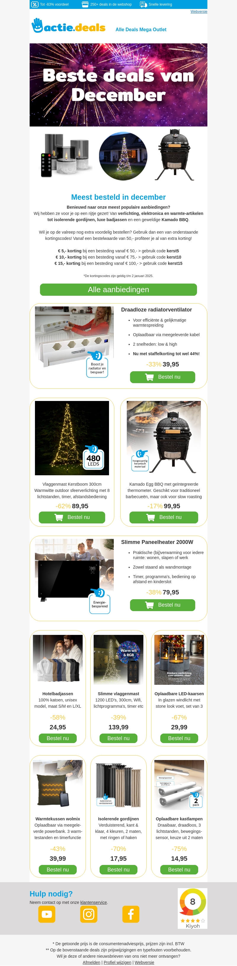 Verwen jezelf met de beste decemberaanbiedingen. Ontdek verlichting, elektronica en meer met geweldige kortingen. Gebruik speciale kortingscodes en bespaar tot 15 euro. Haal snel jouw favoriete producten in huis voor de feestdagen.