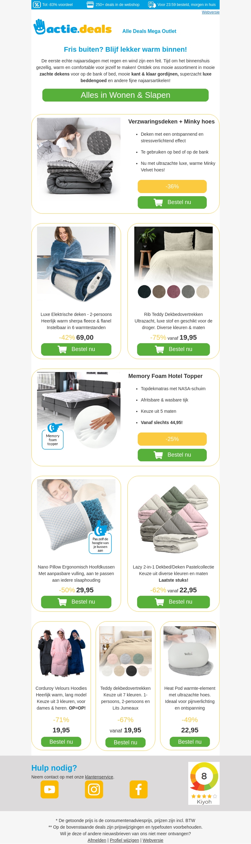 Bereid je voor op de koudere dagen met onze herfst musthaves. Geniet van zachte dekens, luxe elektrische dekens, trendy dekbedovertrekken en comfortabele kussens. Perfect om warm en knus te blijven tijdens het najaar. Bekijk nu ons volledige assortiment en haal het beste naar huis.