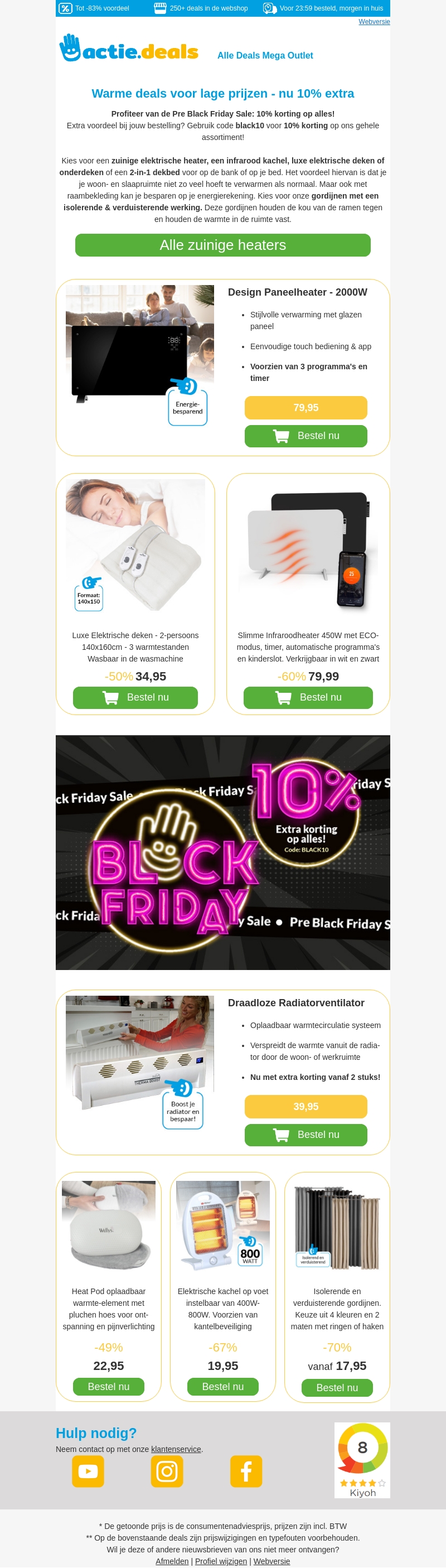 Maak je klaar voor de winter met onze energiezuinige verwarmingsoplossingen. Profiteer van onze Pre Black Friday Sale en krijg 10% extra korting op alles met code BLACK10. Ontdek ons assortiment van elektrische dekens, infrarood heaters en meer. Zorg dat je huis warm blijft zonder hoge kosten. Mis deze kans niet voor voordelig verwarmen.