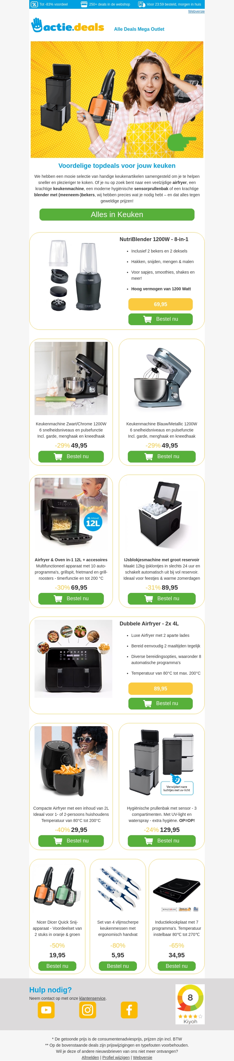 Deze nieuwsbrief presenteert de beste keukenaanbiedingen met kortingen tot 85%. Of je nu op zoek bent naar een blender, keukenmachine of hygiënische prullenbak, we hebben het allemaal. Profiteer van hoogwaardige producten tegen lage prijzen en maak koken efficiënter en leuker.