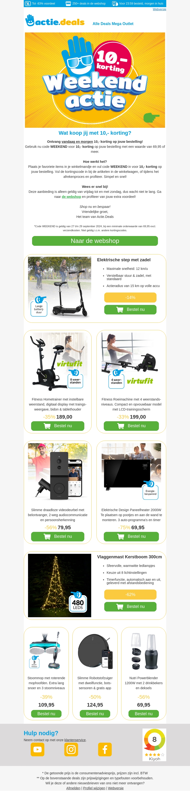 Mis deze kans niet! Ontvang vandaag en morgen €10 korting op jouw bestelling bij Actie.Deals. Gebruik de code WEEKEND bij een minimale besteding van €69.95. Shop nu en bespaar.