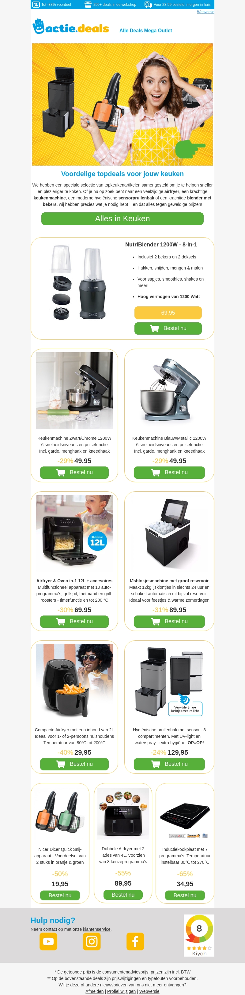 We hebben een speciale selectie van topkeukenartikelen samengesteld om je te helpen sneller en plezieriger te koken. Of je nu op zoek bent naar een airfryer, een keukenmachine, of een handige snijmachine, we hebben precies wat je nodig hebt en dat alles tegen geweldige prijzen!