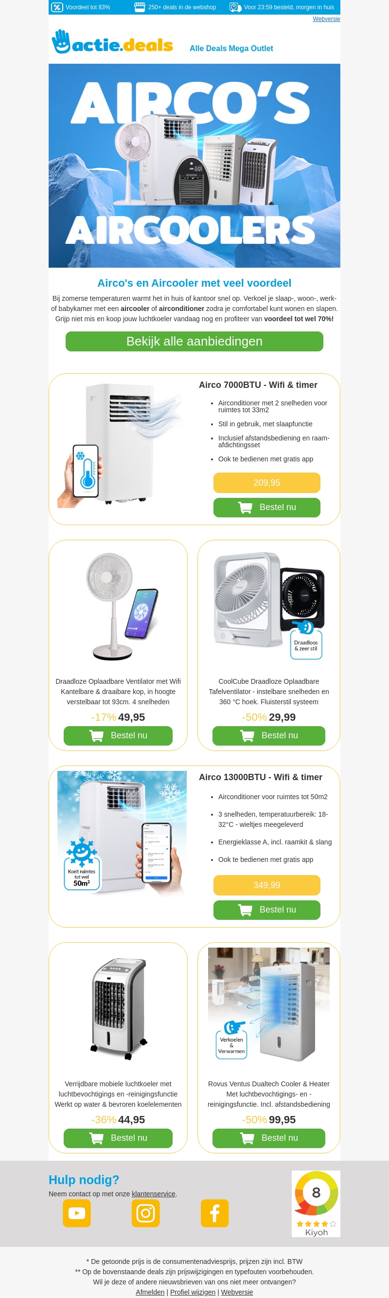 Ontdek nu de beste aanbiedingen op airco's en aircoolers bij actie.deals. Bespaar tot wel 70% op diverse modellen, inclusief wifi-functionaliteit en timer. Bekijk alle aanbiedingen en vind de perfecte oplossing voor een koele zomer.