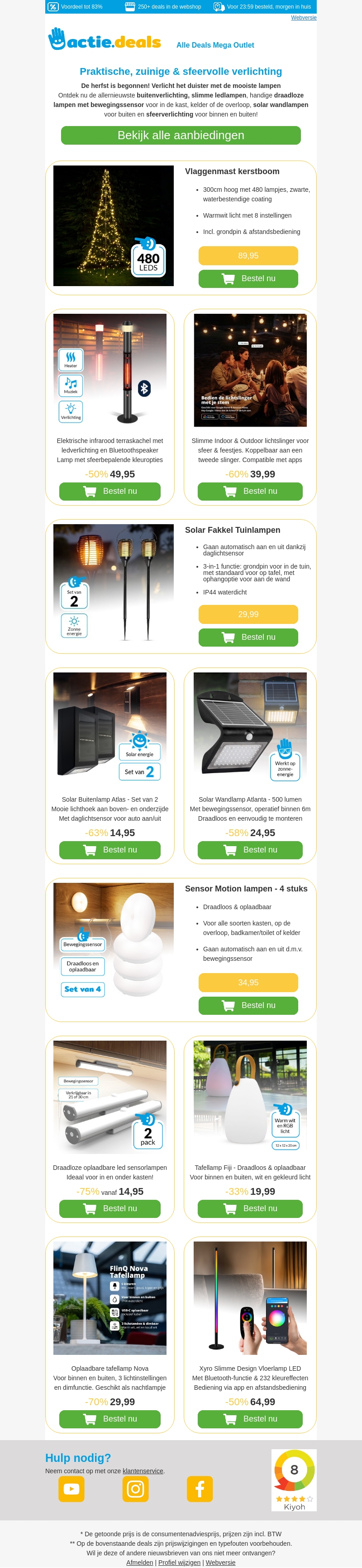 De herfst is begonnen! Verlicht het duister met mooie en slimme lampen. Ontdek sfeervolle verlichting, slimme LED-lampen, en meer. Perfect voor binnen en buiten, nu met kortingen tot 75%! Mis het niet.