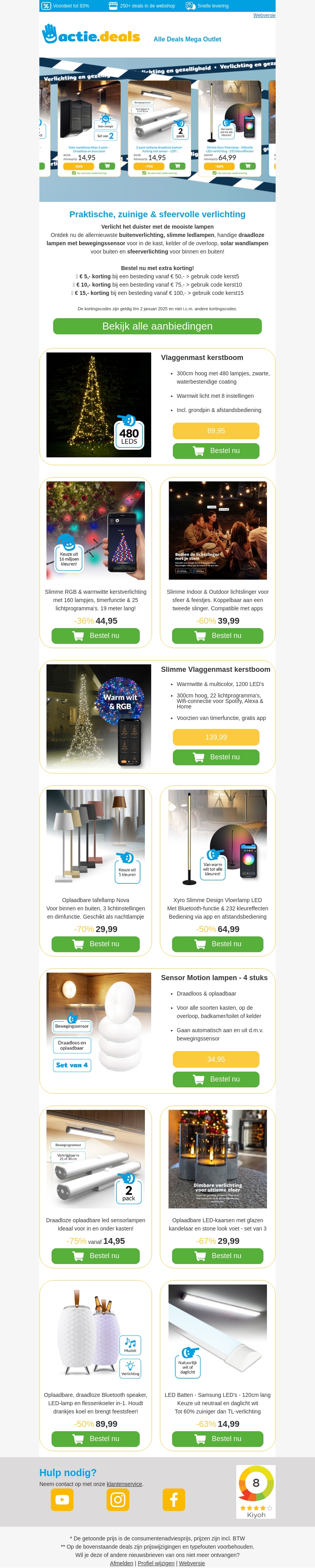 Verlicht je huis met onze slimme en energiezuinige lampen. Ontdek een breed scala aan verlichting die perfect is voor zowel binnen als buiten. Geniet van speciale kortingen en aanbiedingen op stijlvolle en praktische lampen. Maak je huis sfeervol met onze innovatieve verlichtingsoplossingen. Mis de kans niet om te besparen en te verlichten in een groenere stijl.