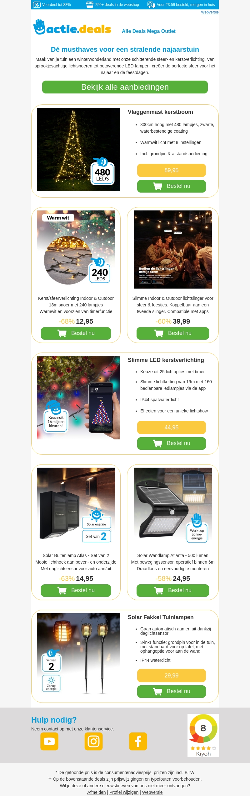 Breng je tuin tot leven met onze selectie van stijlvolle tuinverlichting voor het najaar en de feestdagen. Vind alles van vlaggenmast kerstbomen tot slimme LED-verlichting. Geniet van de magie van warme, duurzame lampen en maak je buitenruimtes feestelijk en uitnodigend. Ontdek nu onze producten voor prachtige, sfeervolle avonden.