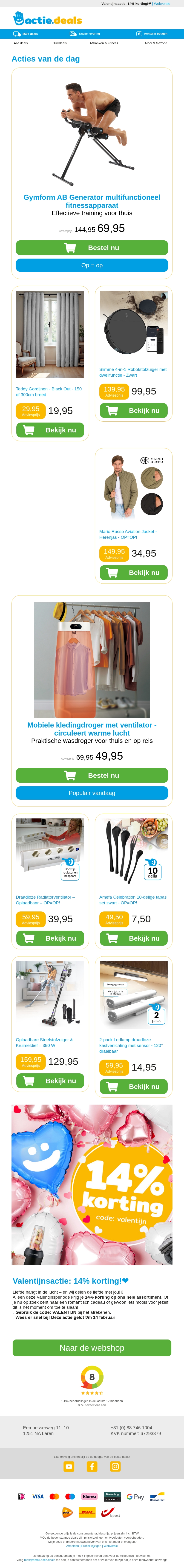 In deze nieuwsbrief presenteren we de nieuwste deals met grote kortingen. Profiteer van het veelzijdige Gymform AB Generator fitnessapparaat en de stijlvolle Mario Russo Aviation Jacket. Mis deze kans niet om je huis te verrijken met onze stijlvolle en functionele producten.