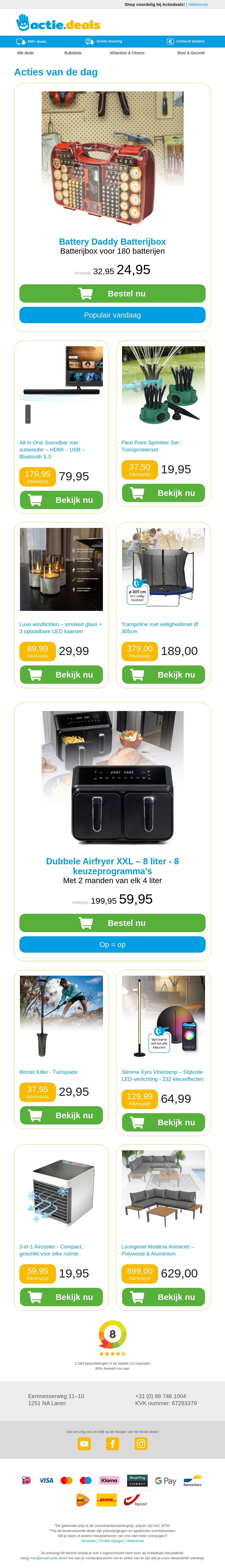 Battery Daddy Batterijbox | All-in-one Soundbar | Flexi Point Sprinkler set | Luxe windlichten + LED kaarsen | Trampoline met veiligheidsnet