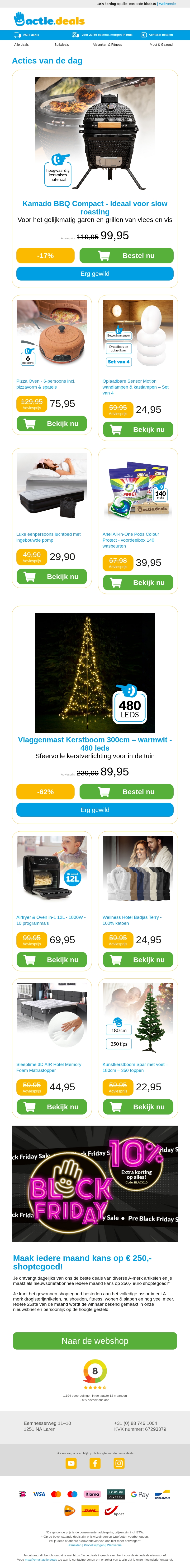 Profiteer van geweldige aanbiedingen op de Kamado BBQ Compact, luxe luchtbedden en sensor motion lights. Unieke deals die je niet wilt missen! Ontvang ook een voorproefje van de unieke kerstdecoraties met 480 LED's. Maak je klaar voor het seizoen met Ariel Waspods en meer!