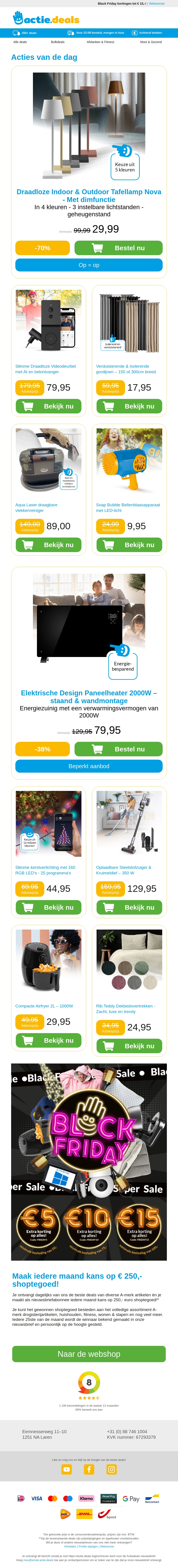 Deze nieuwsbrief brengt de nieuwste deals op diverse huisproducten zoals de draadloze tafellamp Nova en slimme videodeurbel. Ontdek ook isolerende gordijnen en handige huishoudelijke apparaten. Profiteer van speciale kortingen en maak je huis nog comfortabeler. Mis de exclusieve aanbiedingen niet!