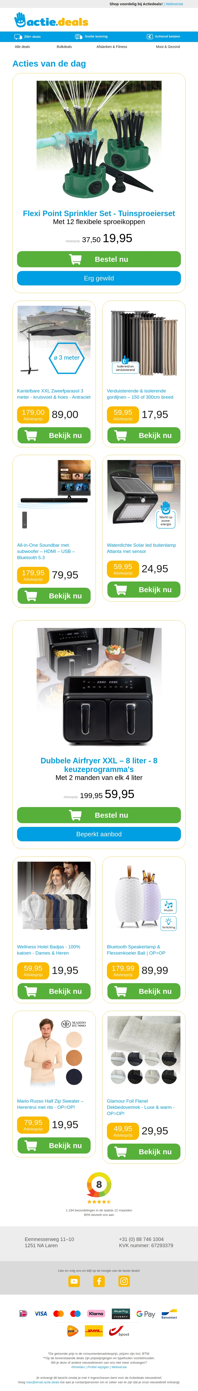 Dubbele Airfryer XXL | Gordijnen Verduisterend | Lazy Dekbed | Tafellamp Indoor & Outdoor | Aqualaser Stoomreiniger