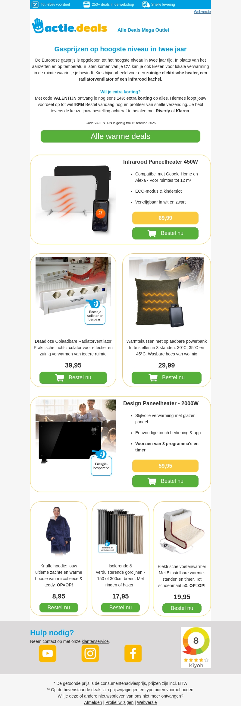 De Europese gasprijzen bereiken hun hoogste punt in twee jaar. Maak gebruik van lokale verwarmingsopties zoals energiezuinige heaters en profiteer van extra korting. Gebruik code VALENTIJN voor 14% korting op uw aankoop. Geniet van snelle levering bij vooruitbetaling met Klarna of Riverty.
