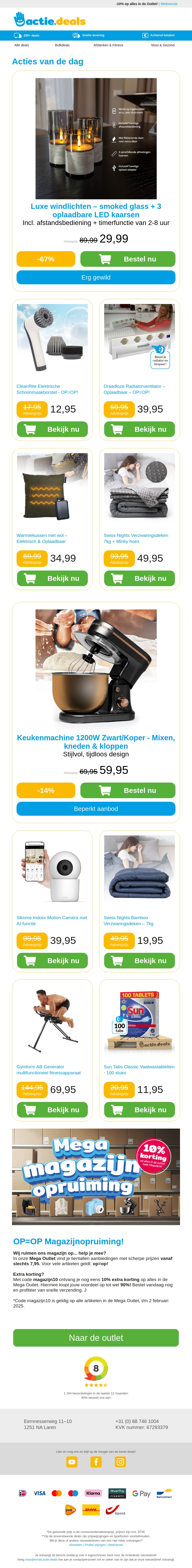 In deze nieuwsbrief ontdek je luxe windlichten, een handige elektrische schoonmaakborstel, en slimme verwarmingsproducten zoals een radiatorventilator en een warmtekussen. Profiteer van kortingen tot wel 67%! Mis de kans niet om je huis comfortabel en stijlvol te maken. Bekijk de aanbiedingen nu.