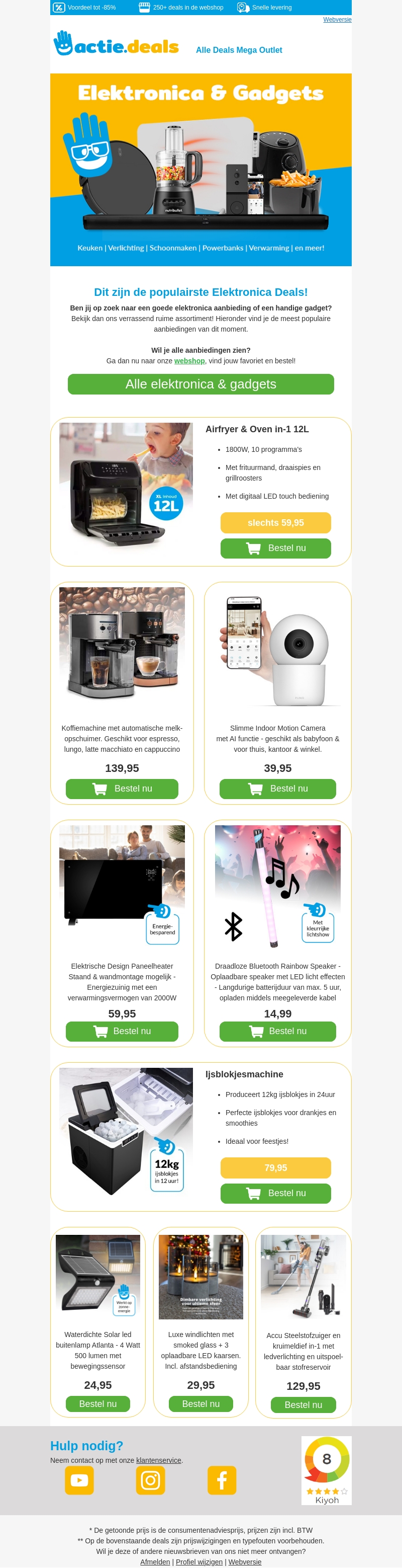 Ben je op zoek naar geweldige deals op elektronica en gadgets? We hebben alles voor je verzameld: van airfryers en slimme camera's tot stijlvolle speakers en handige ijsklontjesmachines. Profiteer nu van de scherpe aanbiedingen en steek je huis vol met de nieuwste technologie tegen een gereduceerde prijs!