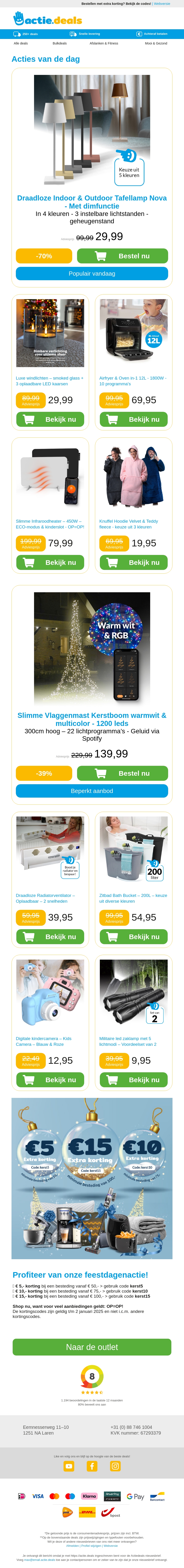 Ontdek een breed scala aan producten in deze nieuwsbrief, van oplaadbare tafellampen tot XXL airfryers. Profiteer van geweldige aanbiedingen op knuffelhoodies en infrarood verwarmers. Perfect voor sfeervolle en comfortabele avonden thuis. Mis deze kortingen niet!