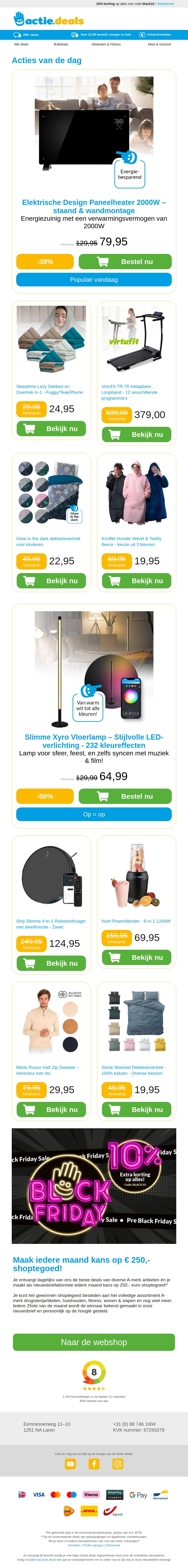 Ontdek geweldige aanbiedingen op praktische en stijlvolle producten. Van een krachtige 2000W paneelheater tot een slimme inklapbare loopband, perfect voor je gezonde levensstijl. Bekijk ook ons glow-in-the-dark beddengoed en knuffelhoodies voor ultiem comfort. Elke aankoop biedt topkwaliteit voor aantrekkelijke prijzen.