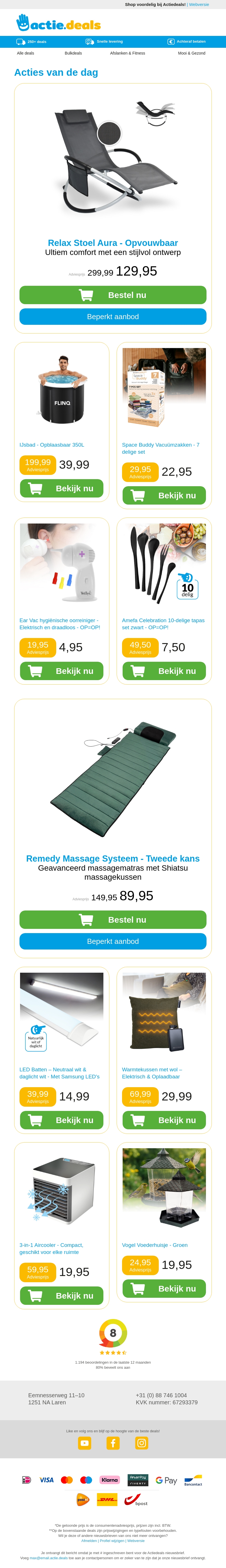 Relaxstoel Aura | Opblaasbaar Ijsbad | Space Buddy Vacuümzakken | Ear Vac Oorreiniger | Amefa 10-delige tapas set