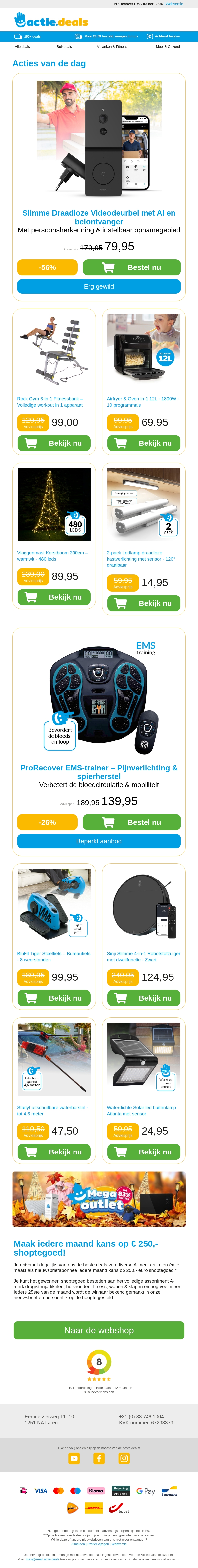 Deze nieuwsbrief biedt een reeks spannende producten, inclusief een slimme videodeurbel met AI voor verbeterde veiligheid. Verken de Rock Gym fitnessbank voor thuisgebruik en ontdek de veelzijdige XXL Airfryer om gezonder te koken. Maak je feestdagen compleet met een vlaggenmast kerstboom en handige LED kastlampen. Profiteer van kortingen en acties voor het beste in huis.