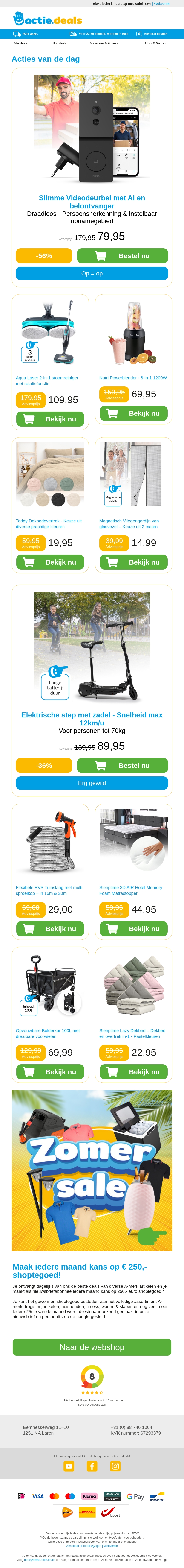 Bekijk onze nieuwste aanbiedingen zoals de slimme videodeurbel met AI en belontvanger. Daarnaast hebben we de roterende stoommop, de Nutri Powerblender en zachte teddy dekbedovertrekken. Ook beschikbaar is een magnetisch horgordijn en andere fantastische deals.
