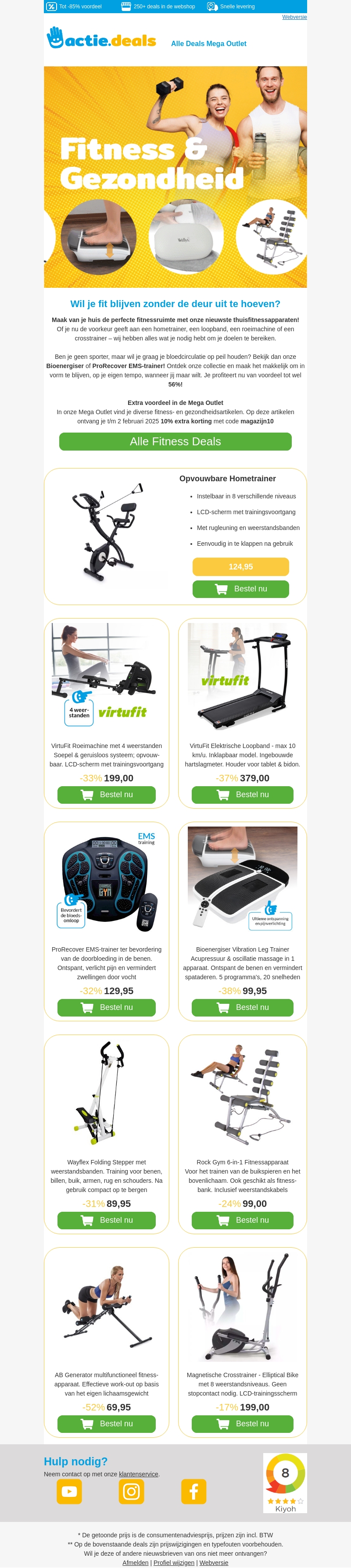 Blijf fit zonder je huis te verlaten met onze indrukwekkende fitnessaanbiedingen. Van hometrainers tot crosstrainers, we hebben alles om je fitnessdoelen te bereiken. Profiteer nu van kortingen tot maar liefst 56%! Bovendien krijg je extra voordeel met de code magazijn10. Perfect voor iedereen die fit en gezond wil blijven.