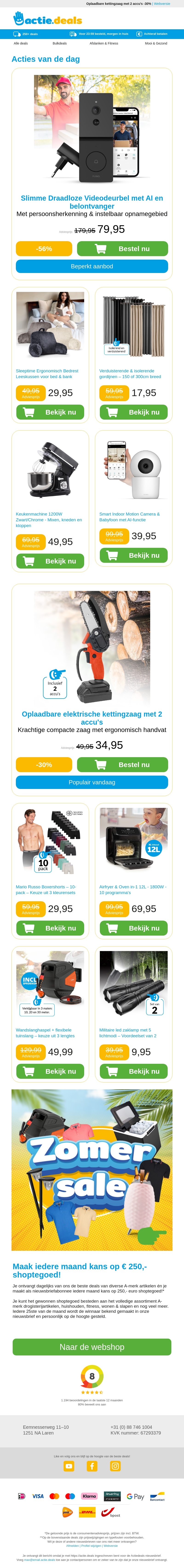 Ontdek de slimme draadloze videodeurbel met AI en belontvanger voor slechts β¬79,95. Profiteer ook van ons bedrest leeskussen, verduisterende gordijnen, keukenmachine, en meer geweldige aanbiedingen. Deze kortingen wil je niet missen!