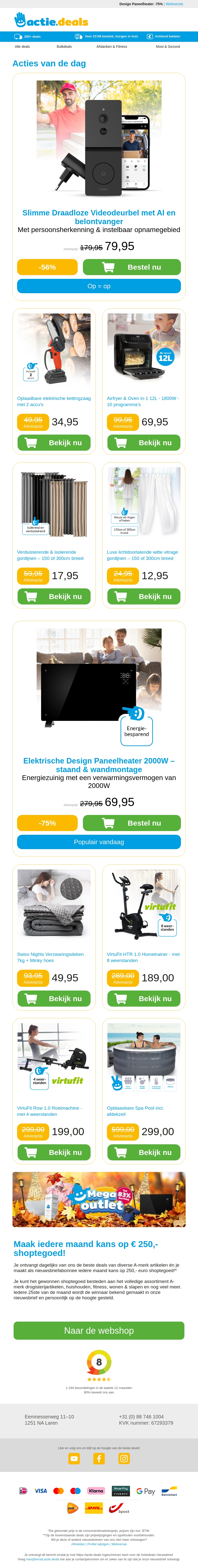 Deze nieuwsbrief presenteert ongelooflijke aanbiedingen voor jouw huis en tuin. Ontdek de slimme videodeurbel met persoonsherkenning, een handige oplaadbare kettingzaag en een ruime XXL Airfryer & Oven. Daarnaast bieden we isolerende gordijnen en vitrage aan om je huis gezellig te maken. Profiteer nu van deze aanbiedingen en verbeter jouw wooncomfort.