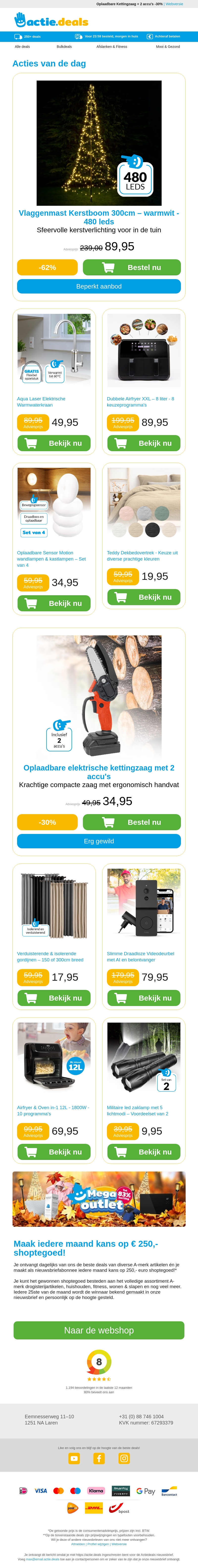Vlaggenmast Kerstboom | Warmwaterkraan | Airfryer met Wifi | Oplaadbare Sensorlampen | Teddy dekbedovertrekken