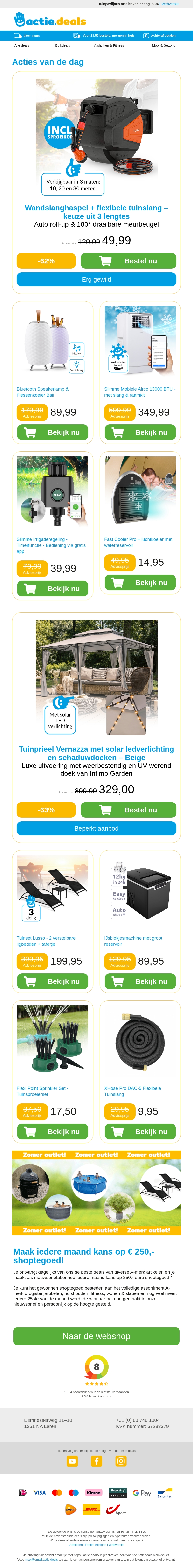 Mis de acties van de dag niet! Scoor een wandslanghaspel met flexible tuinslang, verfris je ruimtes met een speakerlamp en flessenkoeler, blijf koel met een mobiele airco of geniet van de Fast Cooler Pro - luchtreiniger met waterkoeler.