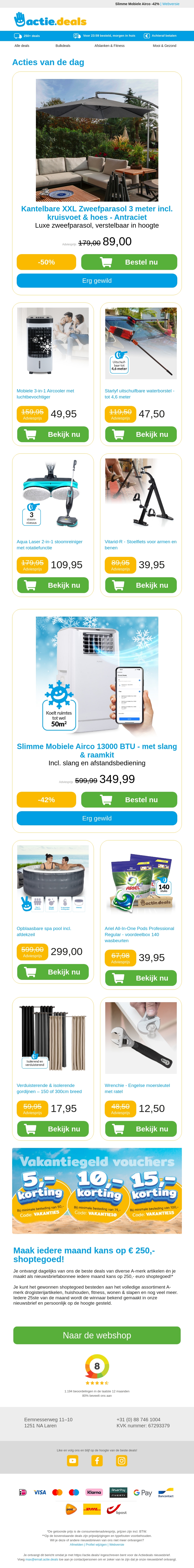 Verken onze nieuwste aanbiedingen met onder andere de XXL Zweefparasol, een mobiele luchtkoeler, en een uitschuifbare waterbezem. Ontdek nu onze scherpe prijzen en kortingen op populaire producten. Mis de kans niet om te besparen met onze exclusieve deals.