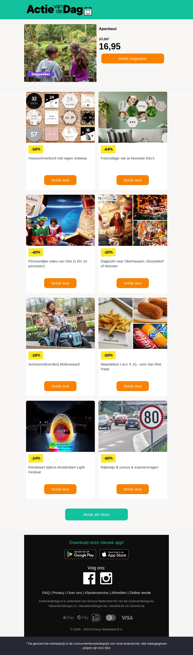 Beleef een onvergetelijke dag bij Apenheul met deze speciale actie! Geniet van een korting en ontdek de wereld van de apen. Deze aanbieding is perfect voor een gezinsuitje of een leuk dagje weg. Met een enorme besparing is dit de kans om Apenheul voordelig te bezoeken. De actie geldt voor een beperkt tijd, dus grijp je kans. Koop nu je dagpakker voor slechts €16,95!