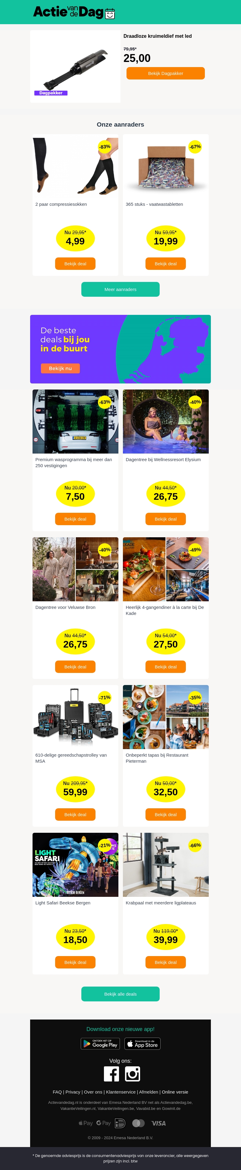 Profiteer van onze speciale aanbieding op de draadloze kruimeldief met LED. Deze handige kruimeldief maakt schoonmaken eenvoudig en efficiënt. Naast deze aanbieding hebben we ook andere deals zoals compressiesokken en vaatwastabletten. Mis deze kans niet en bekijk onze dagaanbiedingen.