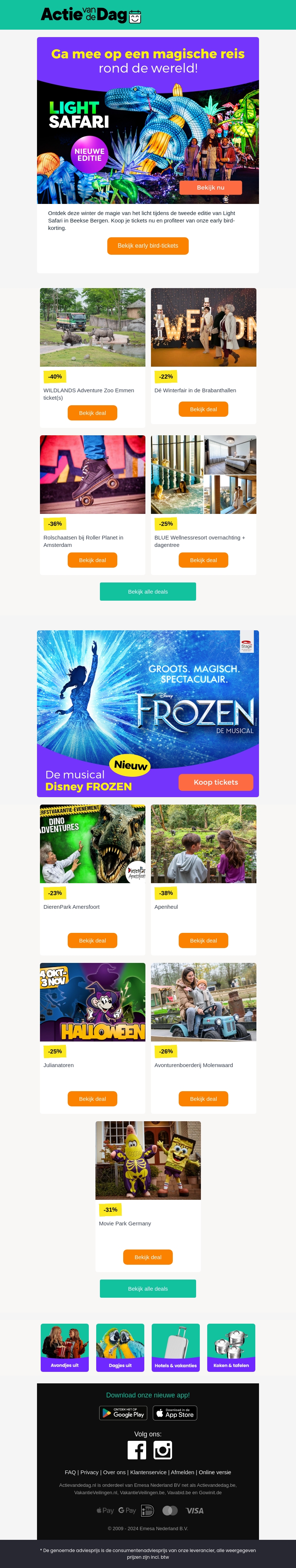 Beleef de magie van de Light Safari in Beekse Bergen deze winter. Geniet van wereldwijde lichtinstallaties en mis de kans niet op exclusieve early bird-tickets om dit spectaculaire evenement mee te maken. Het is een gelegenheid om met familie en vrienden een onvergetelijke avond te beleven, vol met schitterende lichtshows en creatieve displays.
