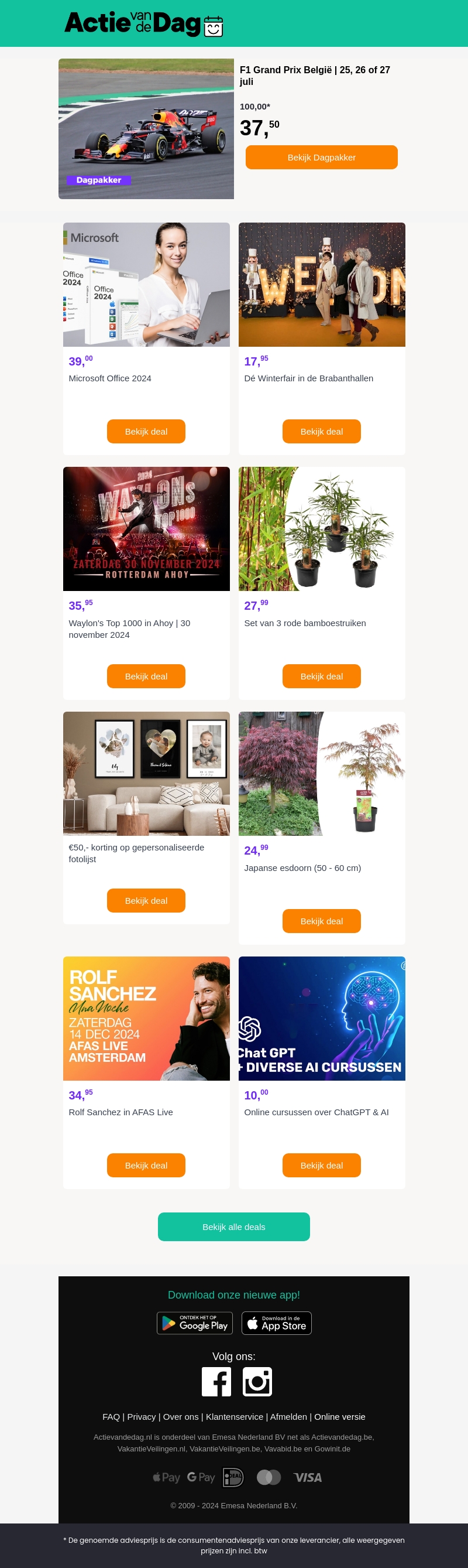 Ontdek de spectaculaire aanbiedingen voor de F1 Grand Prix van België. Geniet van geweldige kortingen op diverse producten, inclusief Microsoft Office 2024 en concertkaartjes. Bereid je voor op een onvergetelijke ervaring met exclusieve deals. Voorwaarden gelden.
